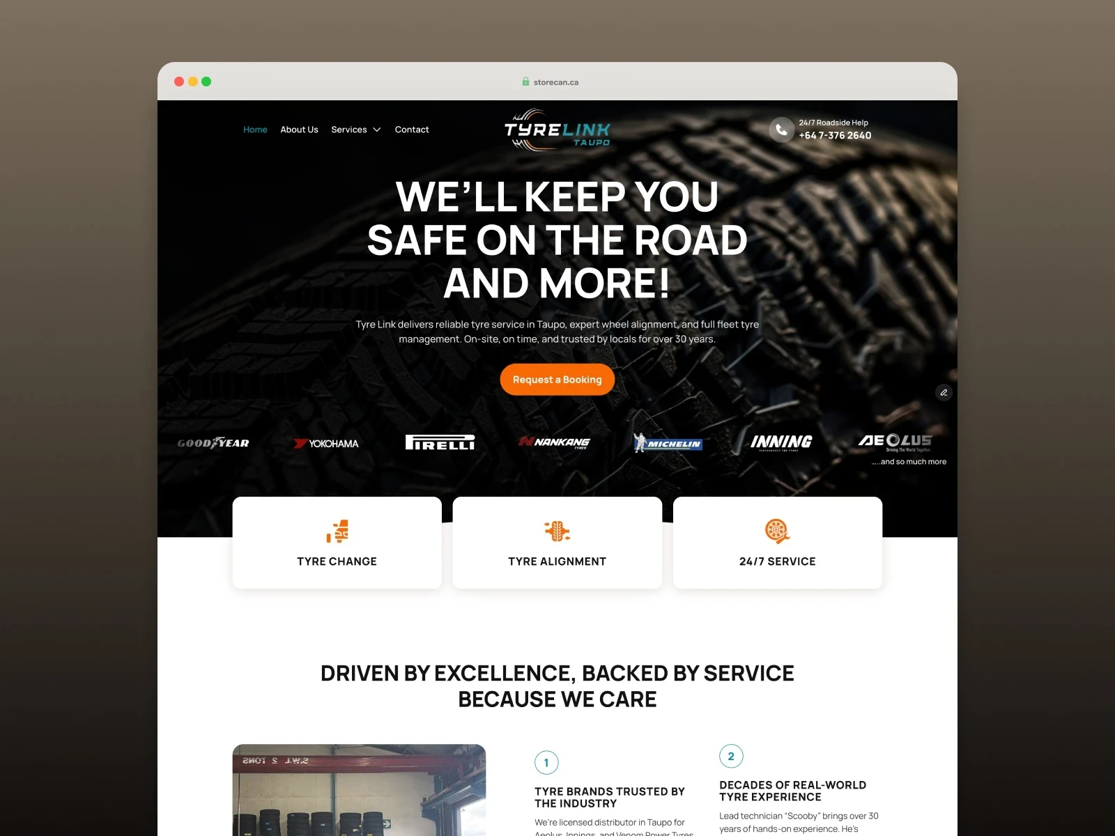 Tyre Link Taupo asked us to build a site that works for personal vehicles, trucks, fleets and emergency mobile calls. We delivered a clean, clear site that displays their full range: tyre change, alignment, mobile call-outs and fleet services. The result is a website that positions them as reliable and ready to serve in any situation.